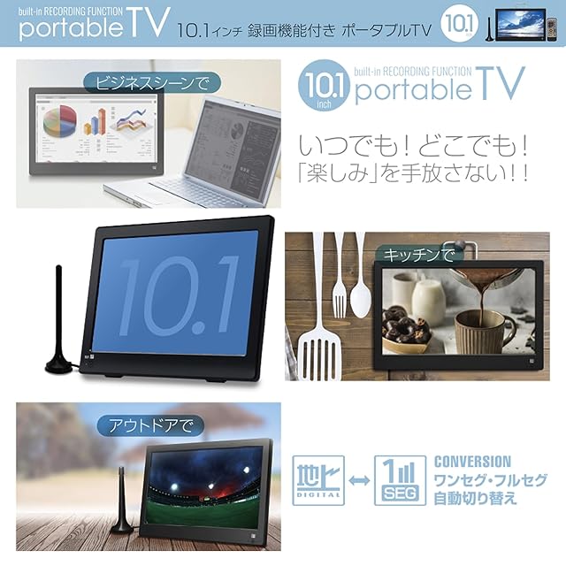 商品名:[東京Deco] 10型 ポータブル 液晶テレビ フルセグ搭載 10.1インチ 録画機能搭載 車載用バック付き [録画機能/HDMI搭載/3電源方式/3スタイル置き/フルセグワンワグ自動切替] アンテナケーブル 壁掛け 地デジ ワンセグ ポータブル RCA TV 9 10 o000