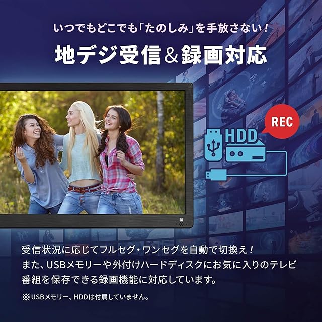 [録画機能] 外付けHDDまたはUSBで録画可能 (フルセグ1GBあたり約10分録画)※メモリー、HDDは別売り