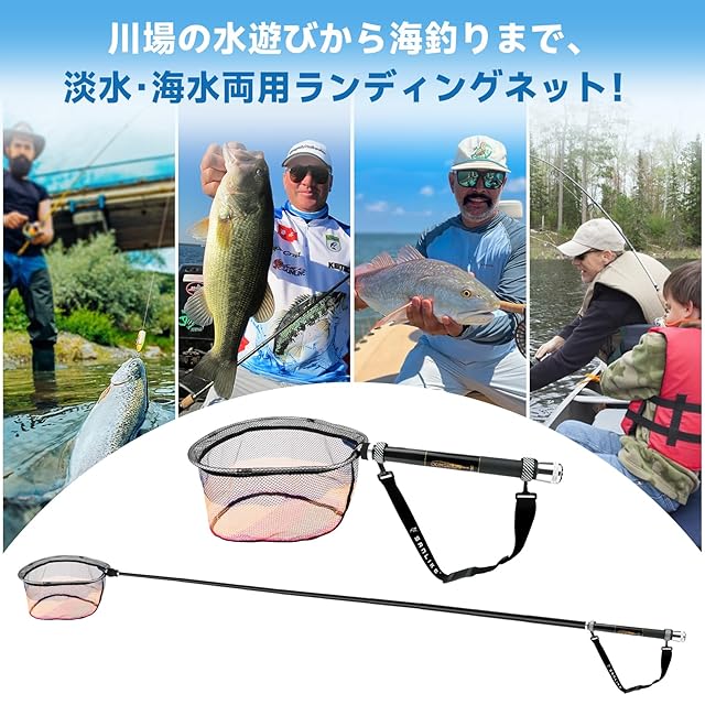 持ち運び便利:網は着脱式で折り畳め、玉の柄は携帯性に優れた仕舞寸法43cmの小継仕様スムーズに伸縮可能、グラス繊維素材で軽量かつ肩掛けベルトを付き持ち運び便利です。