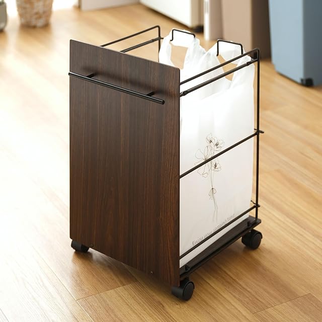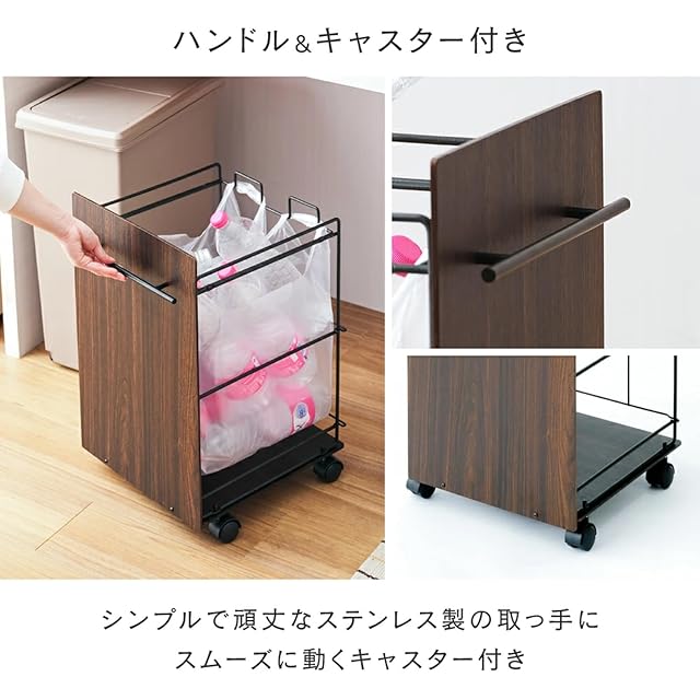 商品名:ドウシシャ レジ袋をひっかけるだけのペールワゴン キャスター付 目隠し分別ダストワゴン ルミナスノワール LPW35-BK 幅35×奥行39×高さ58.5cm 1~2分別 レジ袋45号 ゴミ袋45リットル
