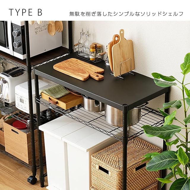 ドウシシャ ルミナス ノワール キッチンラック 棚 幅80 2段 スリムゴミ箱上ラック 全体耐荷重160kg 大型レンジ対応 レンジ台 炊飯器 作業台 オシャレな黒 コの字バー ウッドシェルフ 幅81×奥行41×高さ90cm NO8090-2KW