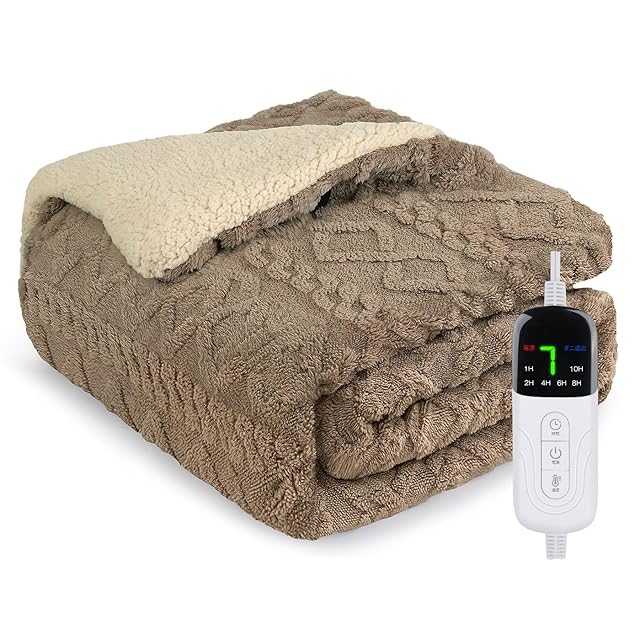 Heshare 電気毛布 掛け敷き兼用 160*130cm 速暖 7段階温度調整 1-10時間タイマー付き 厚手生地 洗える 電気ブランケット ふわふわ 省エネ ダニ退治 過熱保護 抗菌 防臭 洗濯可能 防寒対策 暖房器具 PSE認証済み 日本語取扱い説明書付き コーヒー