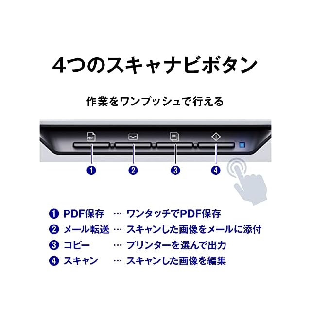 【4つのナビボタンでカンタン操作】本体に装備されたボタンを押すだけで、PCアプリケーションの Epson ScanSmartと連動して手間なくカンタンに作業を完了することができます。