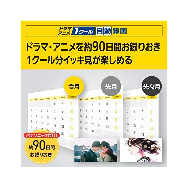「ドラマ・アニメ1クール自動録画」搭載でドラマ・アニメを約90日間自動録画/消去で見逃す心配なし
