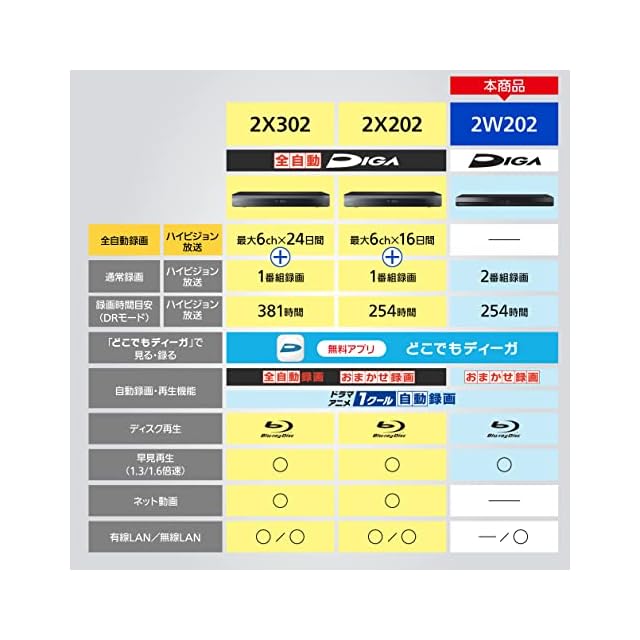 商品名:パナソニック 2TB 2チューナー ブルーレイレコーダー DIGA どこでもディーガ対応 ドラマ・アニメ1クール自動録画 DMR-2W202