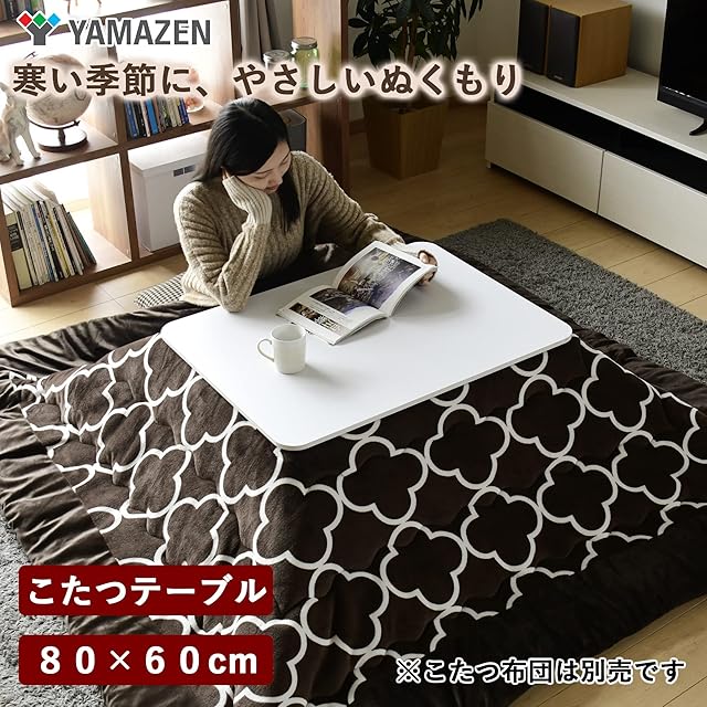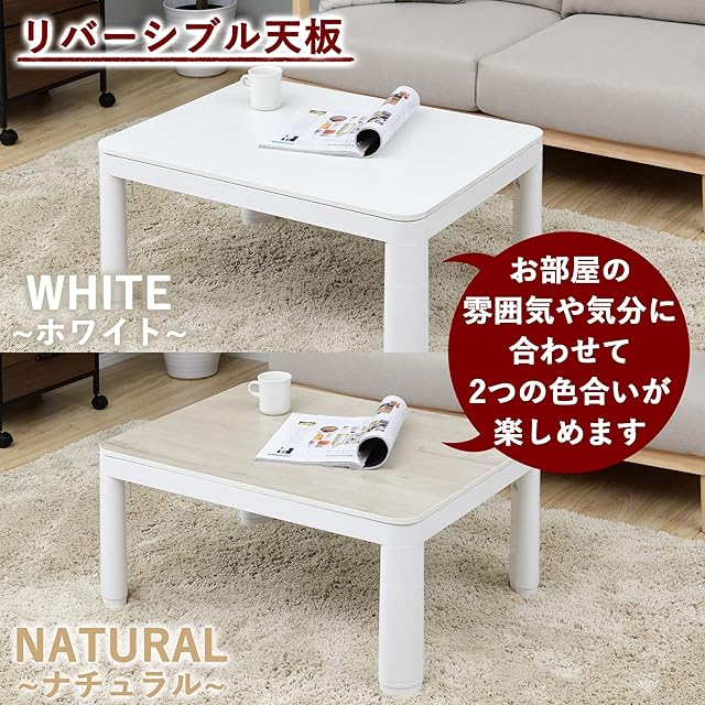 [山善] カジュアル こたつ テーブル 幅80cm×奥行60cm 長方形 一人暮らし 折りたたみ リバーシブル天板 中間入切スイッチ 温度調節無段階 天板ラウンド加工 ホワイト NCF-80602(WH/NA)