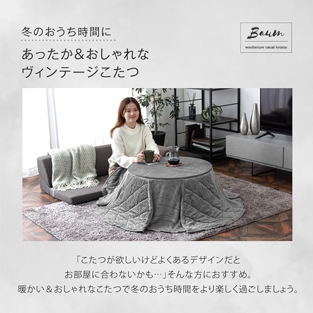 タンスのゲン こたつセット 円型 直径69㎝ 2点セット こたつ+掛布団 ユーデュロイ生地 一人暮らし おしゃれ ストーングレー 21300170(86213)