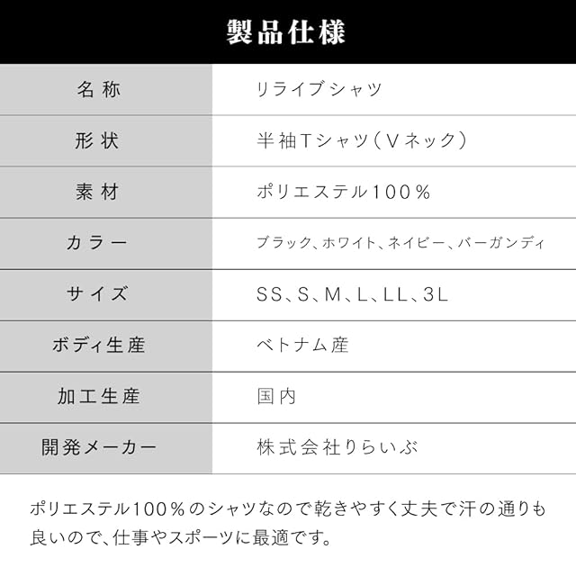 【素材】ポリエステル100%【形状】半袖TシャツVネック 【価格の違いについて】こちらの商品はカラーやサイズによって、価格が違います。その理由は、鉱石が練りこまれたプリントの数の違いとなります。 7,700円のシャツは、お腹あたりに逆V字プリント+背中の肩付近に4本の特殊プリント加工が施されております。 8,800円のシャツは、背中下部に2本追加してあり、より腰部をサポートしております。 7,700円のシャツは、在庫限りの販売となります。