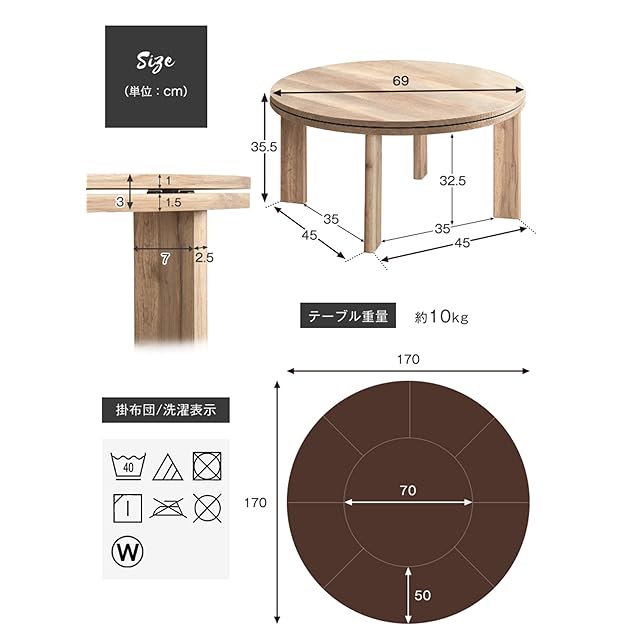 タンスのゲン こたつ 円型 直径69㎝ こたつ+掛布団 2点セット ユーデュロイ おしゃれ シャビーアッシュ ブラウン 21300170(79335)