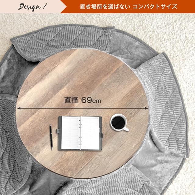 タンスのゲン こたつ 円型 直径69㎝ こたつテーブル こたつセット 2点セット 掛布団 ユーデュロイ生地 おしゃれ シャビーアッシュ 21300170(74576)