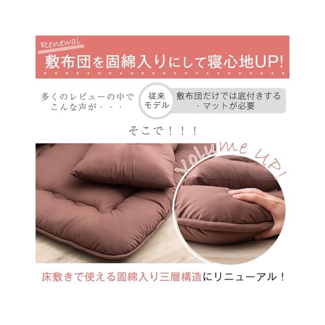 【敷き布団】サイズ:幅140x長さ200cm 生地:ポリエステル100% 詰め物:ポリエステル100%(1.3kg) 固綿:ポリエステル100% [詰め物重量]約3.9kg
