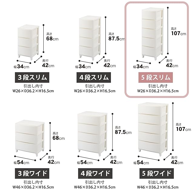 商品内容:奥行42cm x 幅34cm x 高さ107cm (引き出し数 5)