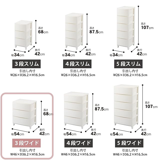 商品内容:奥行42cm x 幅54cm x 高さ68cm (引き出し数 3)