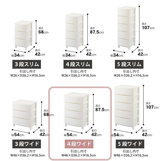 商品内容:奥行42cm x 幅54cm x 高さ87.5cm (引き出し数 4)