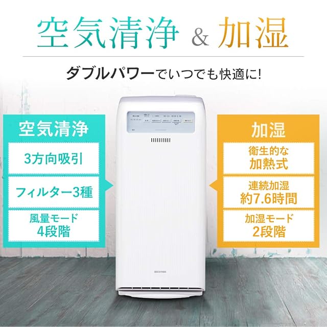 アイリスオーヤマ 加湿 空気清浄機 17畳 脱臭 ホコリ 花粉 加熱式 ホワイト HXF-C40-W