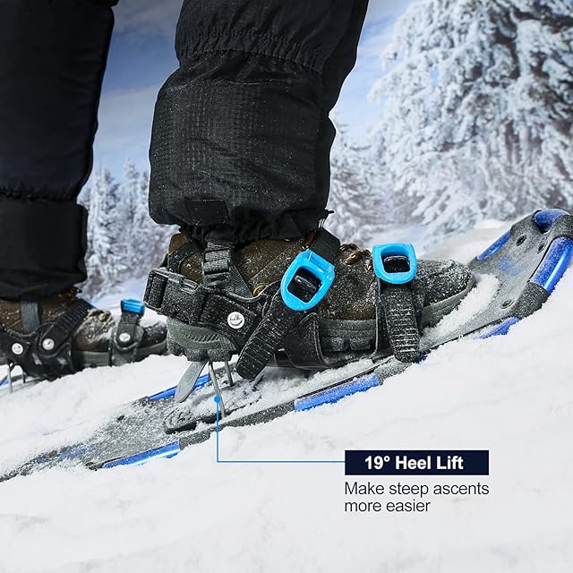 【男女兼用4-in-1セット】このセットには、2*スノーシューズ、1*トレッキングポール、1*スノーゲイター、および1*収納袋が含まれています。使いやすさをする軽量で高品質の素材で作られ、便利なバッグが付けているこのセットは、スノーシューイングの冒険やアウトドア活動に最適です。 80-120lbs / 35-55kgで21インチ、120-160lbs / 55-73kgで25インチ、160-250lbs / 73-113kgで30インチ。