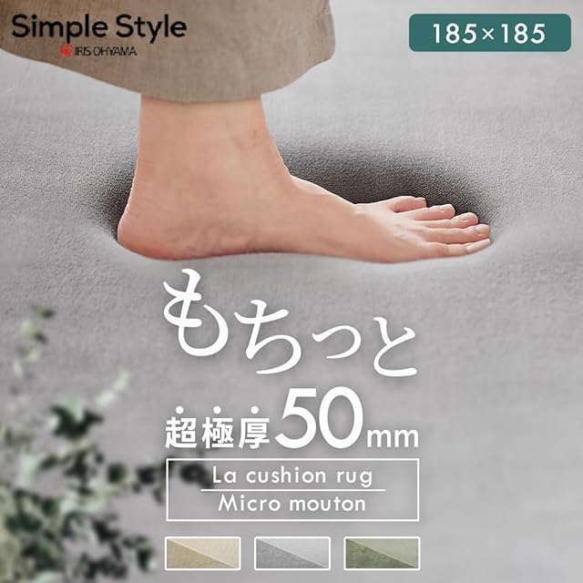 アイリスオーヤマ(IRIS OHYAMA) ラグ カーペット ラ・クッションラグ マイクロムートン オリーブ 185×185cm ふっくら感 超極厚50mm 丸洗い 洗濯機洗い出来る 安心 防ダニ 抗菌 消臭 厚手 ボリューム おしゃれ 北欧 ラグマット ACRMG-1818