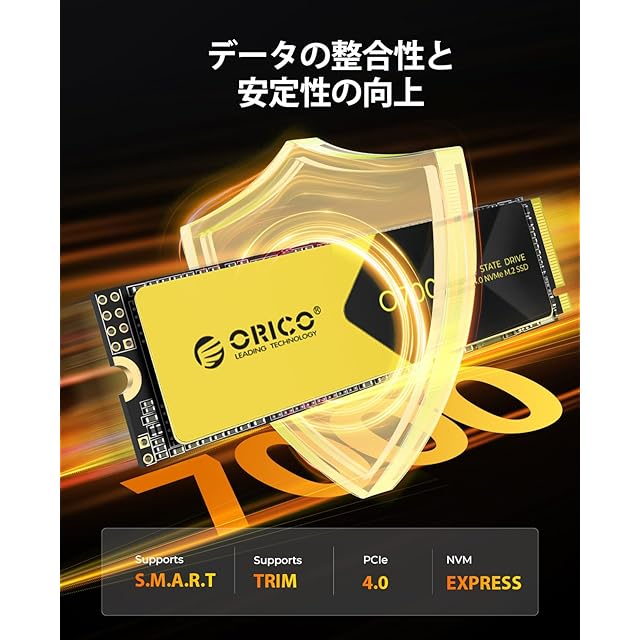 商品名:ORICO O7000 1TB NVMe SSD、ヒートシンク付き、 SLCキャッシ 3D QLC NAND NVMe PCIe4.0 M.2 SSD R:7000MB/s W:6700MB/s メーカー5年