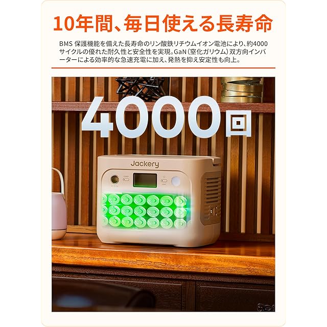 商品名:【日本限定モデル】Jackery (ジャクリ) ポータブル電源 1000 New 1070Wh 業界トップの軽さとコンパクトボディ 1時間満充電 リン酸鉄 10年長寿命 定格出力1500W 瞬間最大3000W 防災 家庭用 アウトドア用 車中泊 UPS機能 アプリ遠隔操作 純正弦波 AC100V 50Hz/60Hz対応 (サンドゴールド)