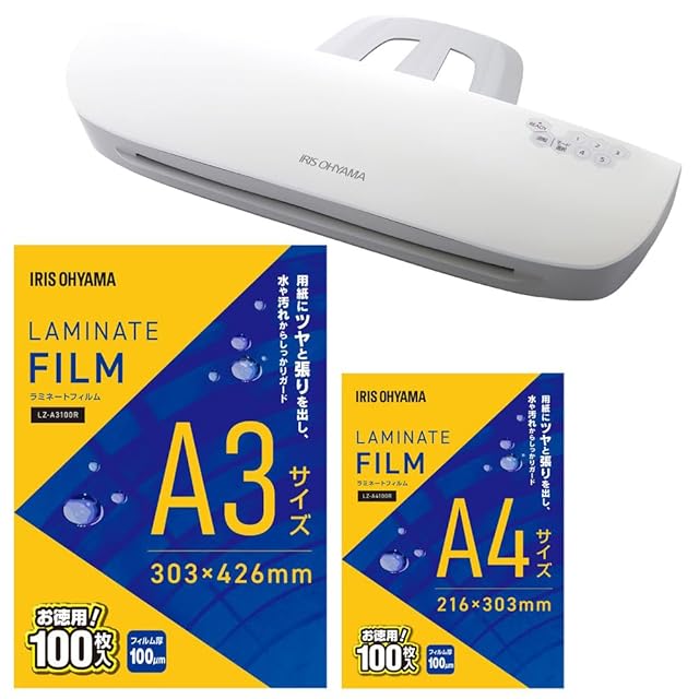 アイリスオーヤマ ラミネーター+A3/A4フィルムセット ウォームアップ時間2分 波打ち防止 温度調節機能付き 気泡なし LFA34AR ホワイト/シルバー