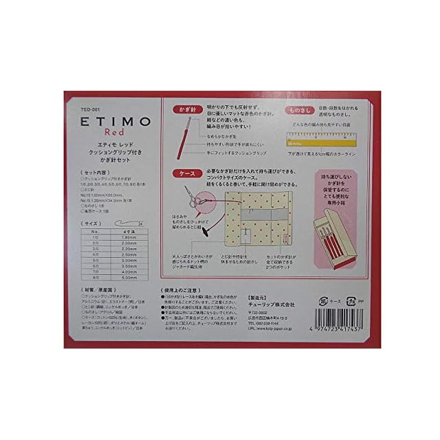 商品名:かぎ針 『ETIMO Red(エティモレッド) かぎ針セット 赤』 編み針 Tulip チューリップ TED001