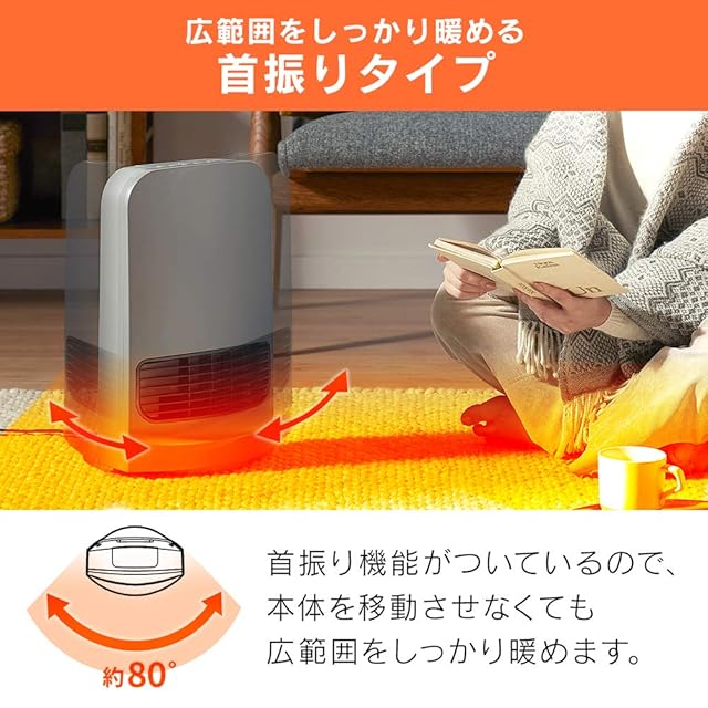首振り機能付きでより広範囲を温めます。