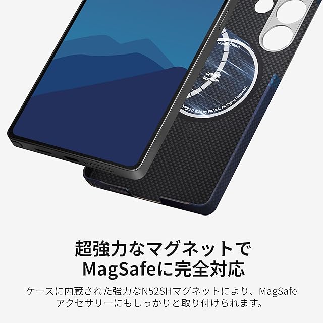 【MagSafe対応】PITAKAが有する特許技術でMagSafe対応リングマグネットとアラミド繊維一体成型を実現。薄型化だけでなく、充電性能も大幅に向上させました。磁気強のN52SH磁石を採用し、より薄く、安定し、長期間にわたり磁気を失いません。PITAKAのMagSafe対応アクセサリーに対応します。ワイヤレス充電器車載スマホホルダーMagEZ Car Mount Proや、MagSafeリングMagEZ Gripと併用してシームレスな生活を楽しめます。★★ご注意:充電プロトコルが違いため、他のMagSafe充電器でなく、Galaxy自体のワイヤレス充電器のご使用をお勧めします。