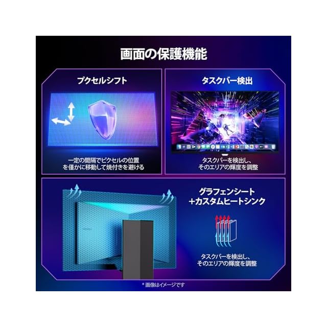 【応答速度0.03ms[GTG] & 240Hz高性能モニター】 2K有機ELパネルを搭載、可変リフレッシュレートで最大240Hz QHDを利用可能です。次世代の量子ドッドディスプレイにより、深みのある色表現と高いコントラスト比を実現、驚異的な画質をもたらします。視覚体験が革新する有機elディスプレイ、また0.03ms(OD)応答速度で、視聴体験の頂点に立つ27インチゲーミングモニターです。AdaptiveSync対応、フリッカーフリー技術が搭載、映像のフレームに同期してや遅延を防ぐ可能の究極のゲームモニター。