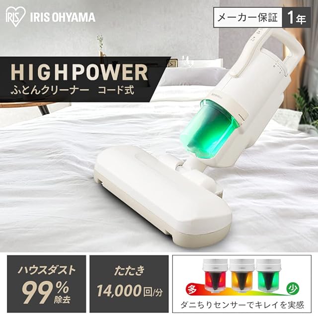 【ハイパワーモデル】 アイリスオーヤマ(IRIS OHYAMA) 布団クリーナー ハイパワー ダニ対策 ワイドヘッド たたき 約14,000回/分 FCA-22H-C アイボリー