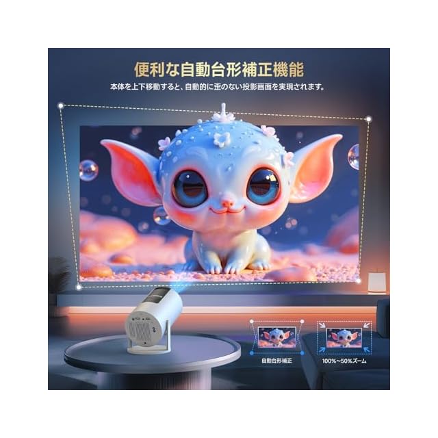 商品名:プロジェクター小型 知能自動台形補正&270°全方位回転&操作簡単 27000LM高輝度 4K対応1080P Wi-Fi6瞬間接続 Bluetooth5.4 天井投影 プロジェクター 家庭用 ホームプロジェクター モバイルプロジェクター HiFiスピーカー内蔵 短距離投影 50%ズーム スマホ/ノートパソコン/DVD/PS4/PS5/などに対応 日本語取扱説明書 3年