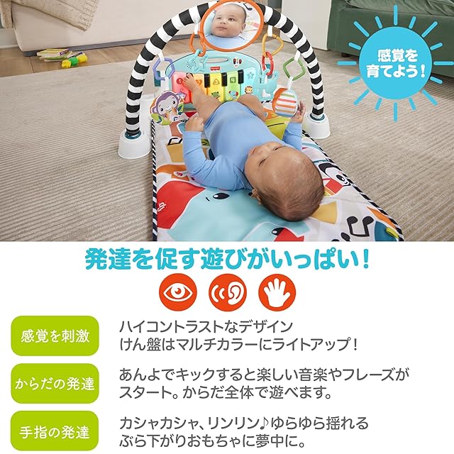 商品名:フィッシャープライス(fisher price) あんよでキック! 感覚が育つ4WAYバイリンガル・ピアノジム 赤ちゃん・幼児おもちゃ 室内遊具 ベビージム ・ プレイマット ・ 英語 ・ 外国語 0ヶ月から マルチ HYJ72