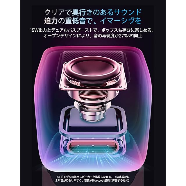 【小型でも迫力の重低音】15Wのパワーと高音質の58mmドライバーで、サイズ以上の重低音とクリアな広がりを再現。動画視聴やゲームでも音の厚みが増し、デスクがミニスピーカーとは思えない臨場感に。スピーカー Bluetooth/TFカード/PC usb接続で、日常の音体験をしっかり底上げします。