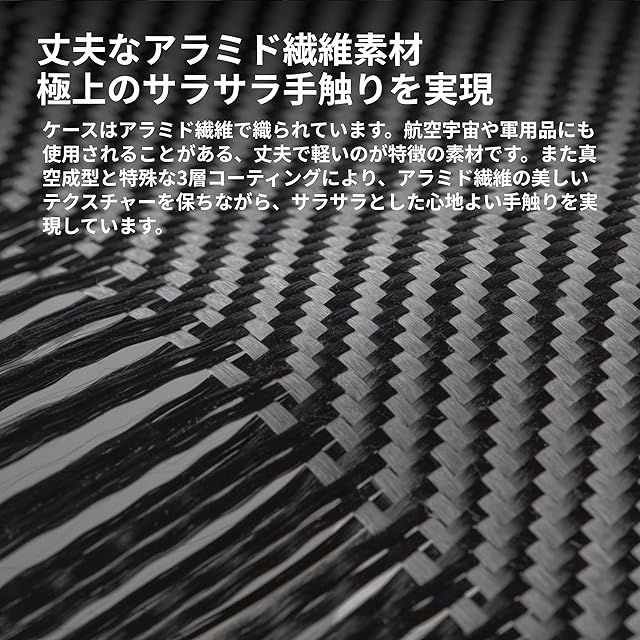 【航空グレードアラミド繊維素材】100%精選の600Dアラミド繊維で織り込んだアラミドクロスを真空成型し、スマホケースを形作ります。その後、コーティングやエッジの処理を施すなどアラミド繊維でPITAKAスマホケースを仕上げるまでに、およそ40ものプロセスを要します。軽量、極薄、擦り傷防止、色褪せ防止、信号干渉なし等の特徴を有しています。ボディアーマー、スーパーカー、飛行機、宇宙船、F2マシンなどにも利用される素材でSamsung Galaxy 25 Ultraをしっかり保護します。600Dの方が1500Dより繊維が細く、薄く、軽くなっています。