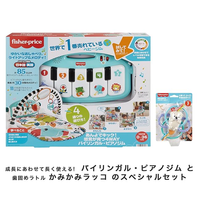 商品名:フィッシャープライス(fisher price) あんよでキック!感覚が育つ4WAYバイリンガル・ピアノジムとかみかみラッコ(歯固めラトル)のセット 赤ちゃん・幼児おもちゃ 知育・学習玩具 室内遊具 ベビージム ・ プレイマット ・ 英語 ・ 外国語 0ヵ月から マルチ HYJ72-HJW12_AS17