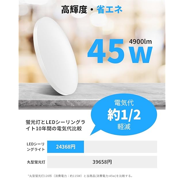⭐【高輝度・シンプルなデザインの天井ライト】 ○このLEDシーリングライトは、高効率LEDレンズを採用し、45Wの消費電力で4900lmという高い明るさを実現しています。新たに改良されたホワイトLEDライトは、より明るく透明感のある光を放ち、均一に10畳の部屋全体を照らします。 ○厚さ5cmのスリムでコンパクトなデザインは、現代的なインテリアからクラシックな空間まで、どんなスタイルにも調和し、部屋の美しさを引き立てます。