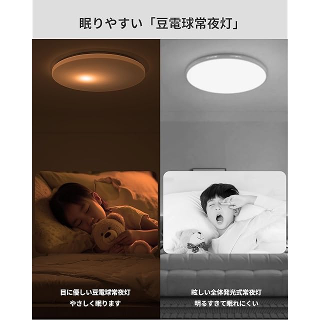 【多機能光制御|豆電球常夜灯・定刻消灯】①10~100% 調光 / 3000K(電球色)~6500K(昼光色)調色に対応,勉強時は明るい昼光色、団欒時は温かい電球色に切替え;②ワンタッチで 3 色温度(電球色 / 昼白色 / 昼光色)切替え;③目に優しい豆電球常夜灯(1 点発光)、15/30 分定刻自動消灯(消し忘れ対策)を搭載。読書時は昼光色、リラックス時は電球色にワンタッチ切り替え。