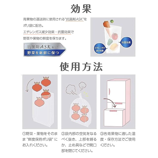 【 保存用バック 鮮度 】野菜・果物を袋に入れて保存するだけで、新鮮さが一目瞭然。保存可能期間が長くなります。