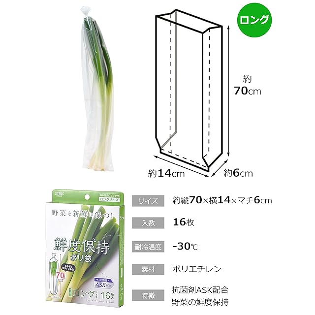商品名:ストリックスデザイン ポリ袋 ロングサイズ 半透明 鮮度保持ポリ袋ロングサイズ 16枚入 抗菌剤配合 SA-225
