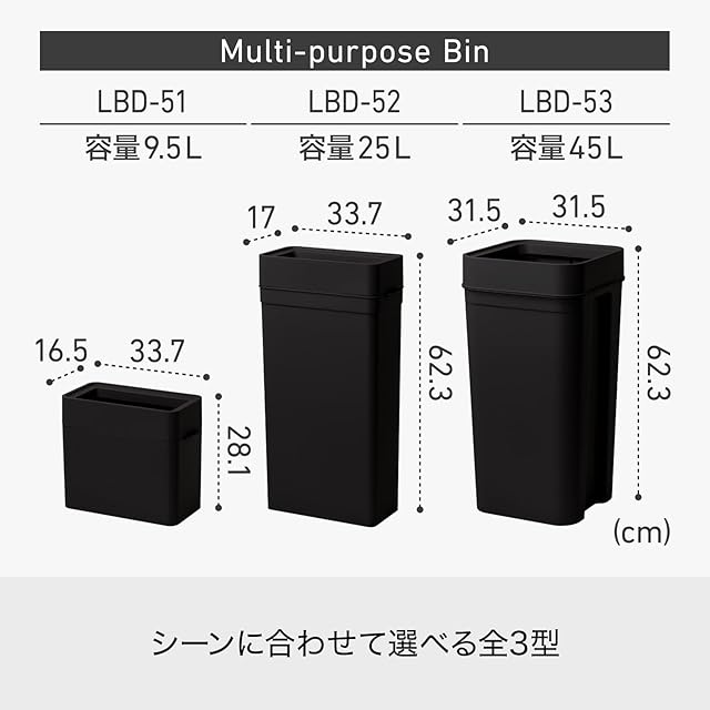 商品名:ライクイット (like-it) フタなしゴミ箱 2分別可能 袋が見えない キッチン オフィス おしゃれ 約45L 日本製 マルチパーパスビン ブラック LBD-53