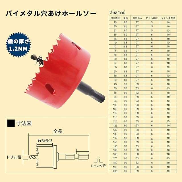 [材質】バイメタルホールソー丸鋸刃は、切れ味、耐食性、耐摩耗性、耐久性に優れた高品質のコバルト含有量M42高速度鋼製。 センタードリルは被削性と靭性に優れた高級鋼を使用。