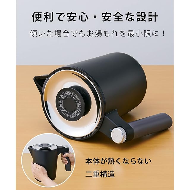 「本体⼆重構造」で本体が熱くならず触っても安心、保温効果も高く冷めにくい。