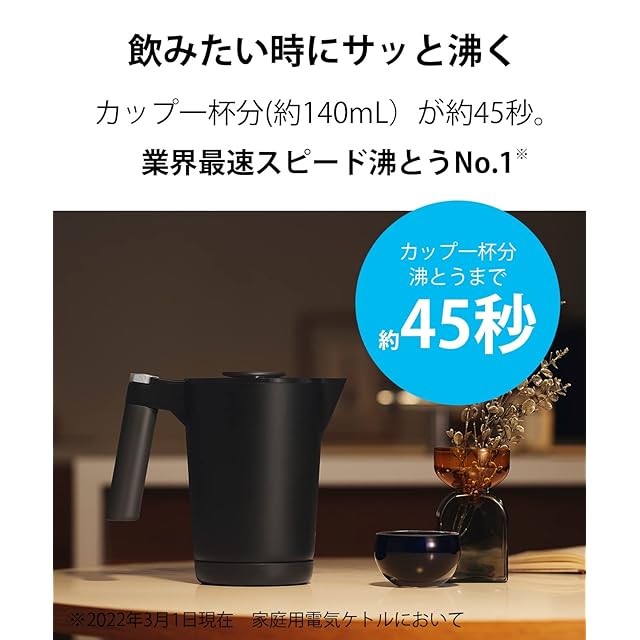 業界最速※スピード沸騰 ※2022年3月1日現在 家庭用電気ケトルにおいて