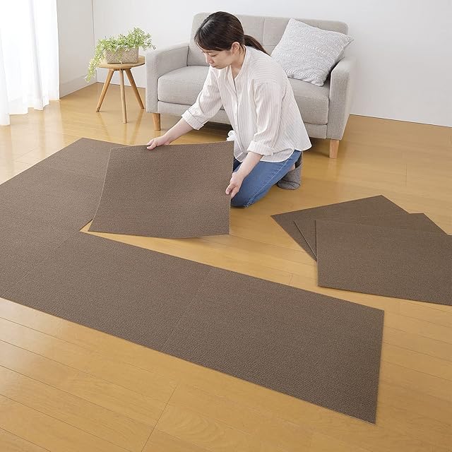 商品名:【日本製 撥水 消臭 洗える】サンコー ずれない ジョイントマット キッチンマット リビング 45×60cm ブラウン 12枚 カーペットタイプ おくだけ吸着 OF-75
