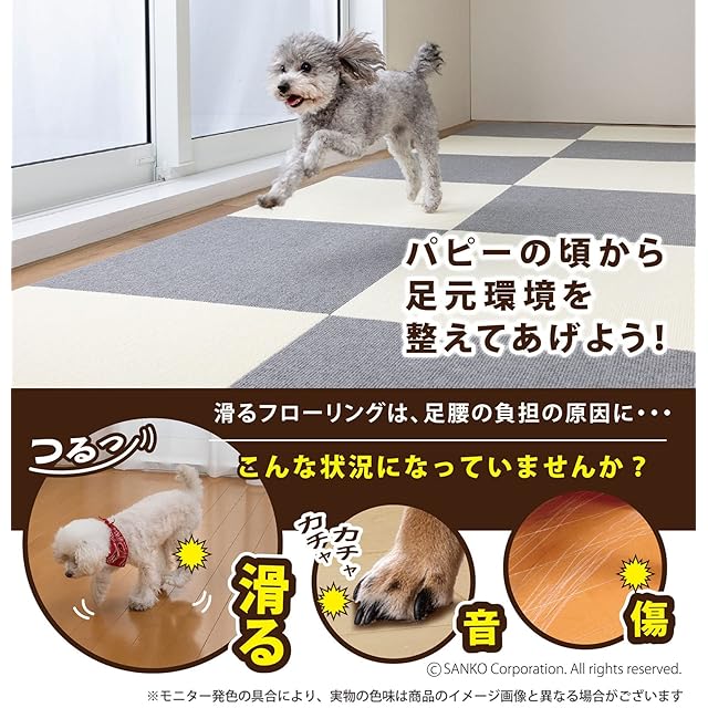 【日本製 撥水 消臭 洗える】サンコー ずれない ジョイントマット ペット用 45×45cm メランジブルー 10枚 カーペットタイプ おくだけ吸着 タイルマット KX-66
