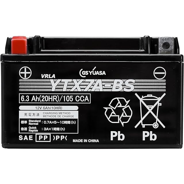 GSYUASAVRLA(制御弁式)YT/YTZ/YTX/GTシリーズ バイク用メンテナンスフリーバッテリー YTX7A-BS