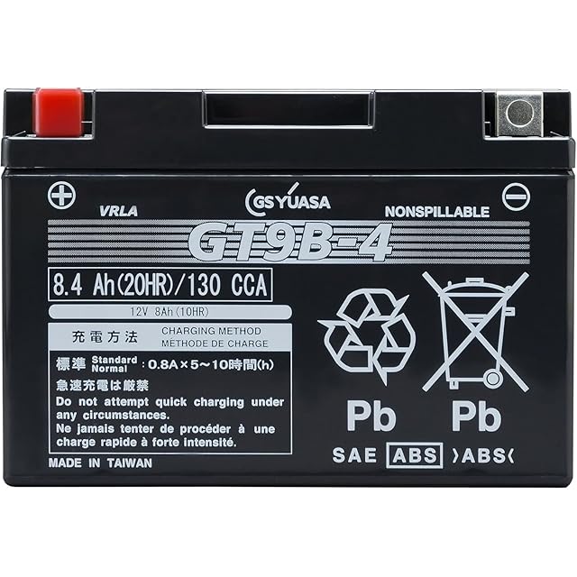 商品名:GSYUASAVRLA(制御弁式)YT/YTZ/YTX/GTシリーズ バイク用シールド型バッテリー GT9B-4