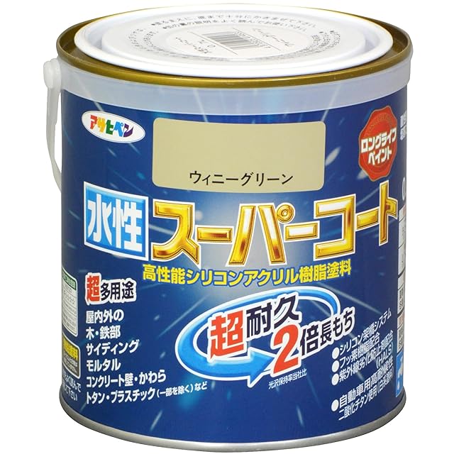 商品名:アサヒペン 水性スーパーコート 0.7L ウィニーグリーン 塗料 ペンキ シリコンアクリル塗料 ツヤあり 1回塗り 超耐久 多用途 さび止め剤配合 防カビ剤配合 紫外線劣化防止剤配合 シックハウス対策品 日本製