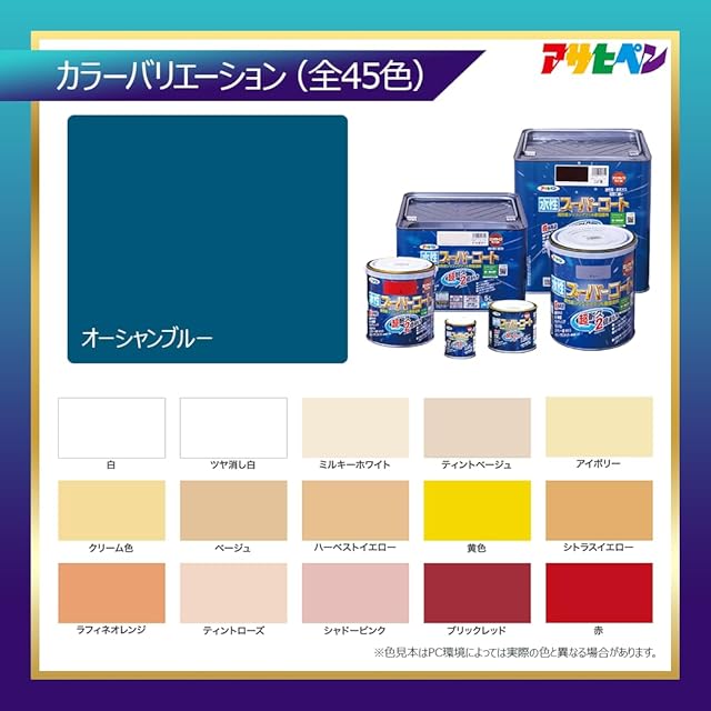 商品名:アサヒペン 水性スーパーコート 0.7L オーシャンブルー 塗料 ペンキ シリコンアクリル塗料 ツヤあり 1回塗り 超耐久 多用途 さび止め剤配合 防カビ剤配合 紫外線劣化防止剤配合 シックハウス対策品 日本製