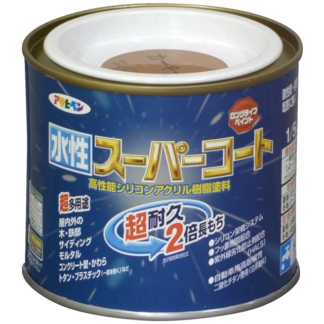 アサヒペン 水性スーパーコート 1/5L カーキー色 塗料 ペンキ シリコンアクリル塗料 ツヤあり 1回塗り 超耐久 多用途 さび止め剤配合 防カビ剤配合 紫外線劣化防止剤配合 シックハウス対策品 日本製