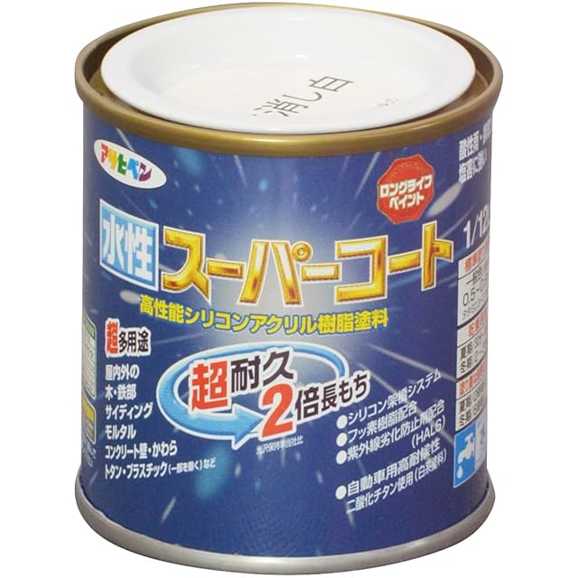 アサヒペン 水性スーパーコート 1/12L ツヤ消し白 塗料 ペンキ シリコンアクリル塗料 ツヤ消し 1回塗り 超耐久 多用途 さび止め剤配合 防カビ剤配合 紫外線劣化防止剤配合 シックハウス対策品 日本製
